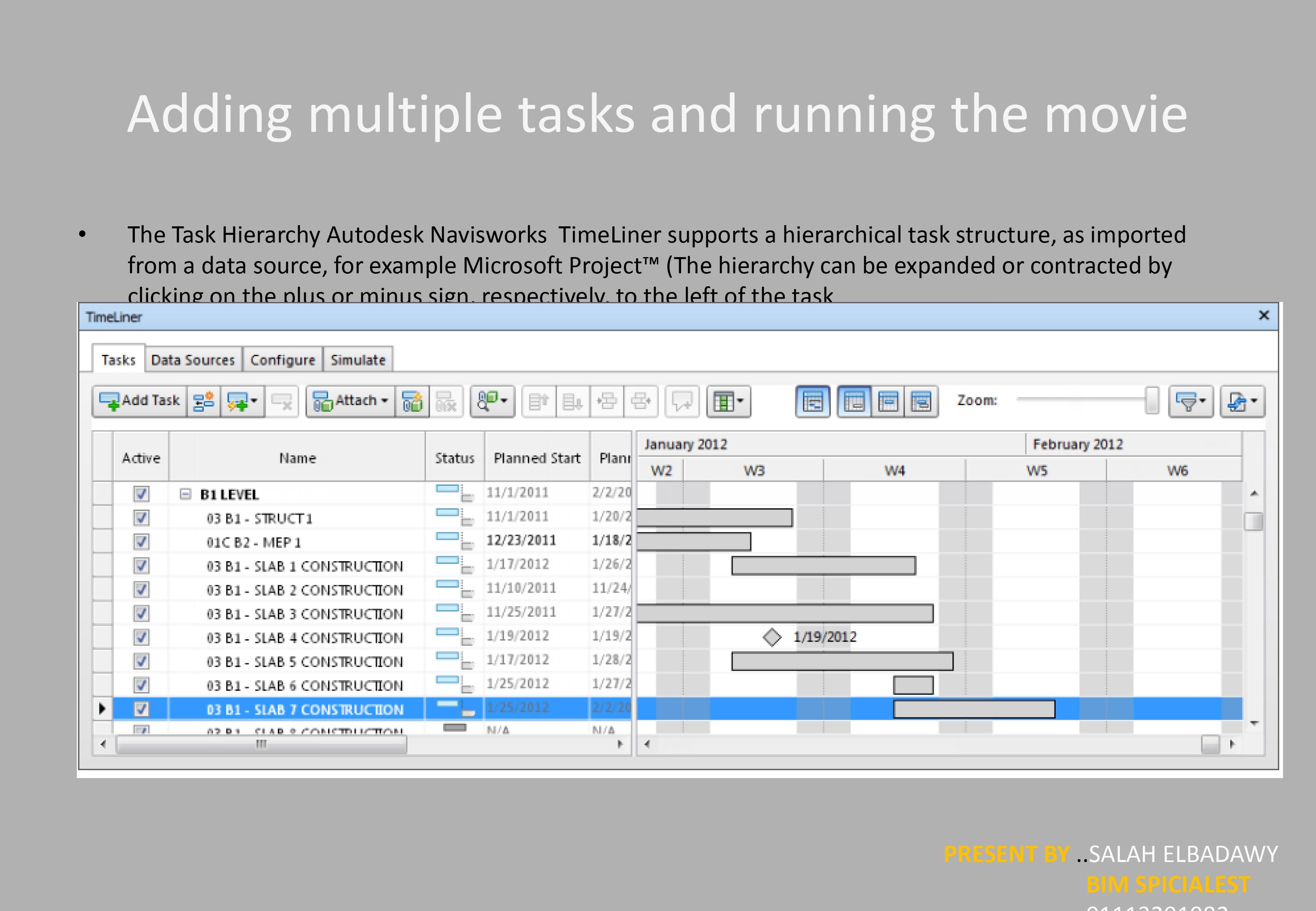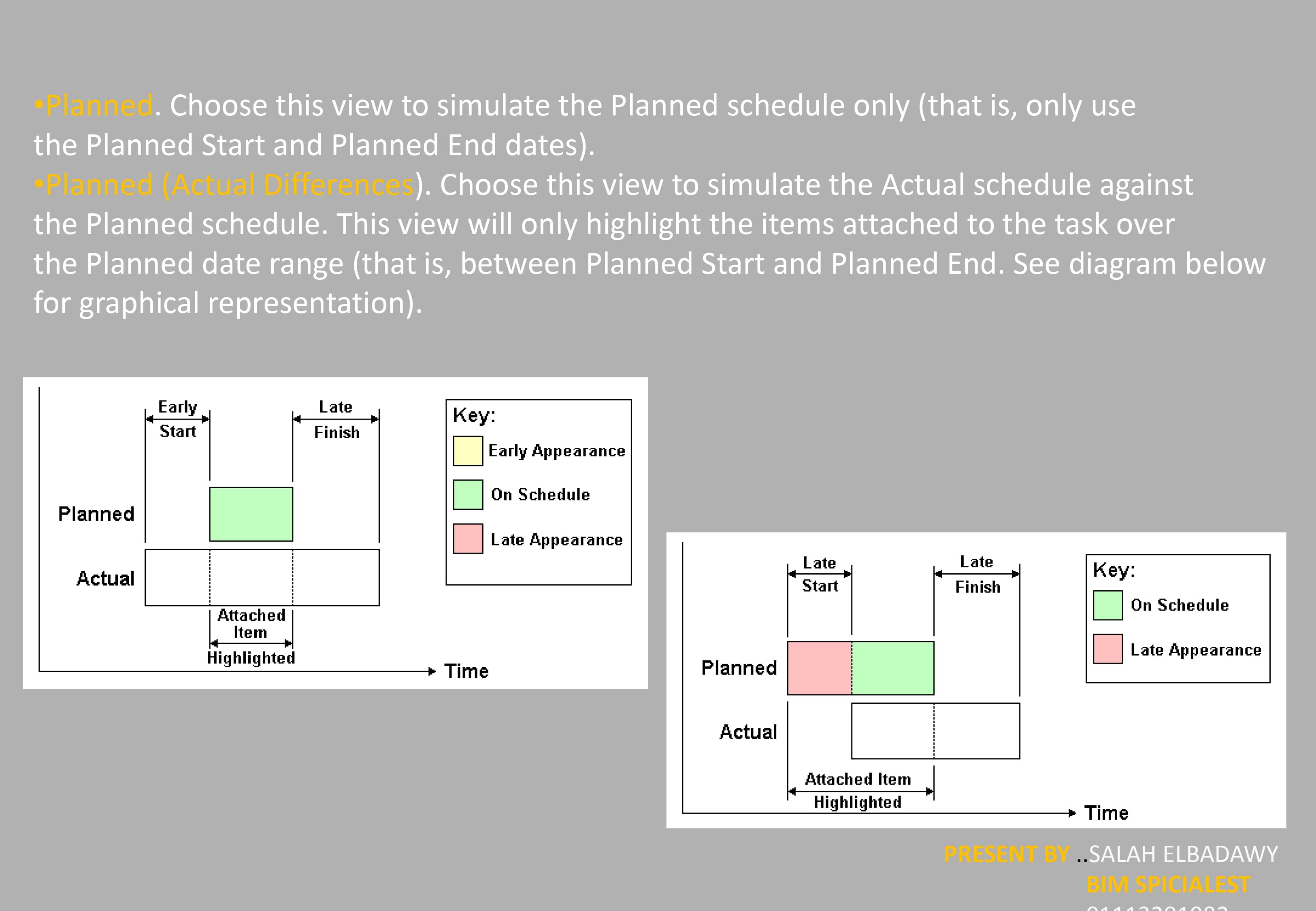 - هتتعلم وهتعرف إن كل الموديل جايلك بكل العناصر بتاعته من كل التخصصات وتقدر تحط معدلات التنفيذ وترتب المهمات بتاعتك عشان تحدد الزمن المطلوب للمشروع.